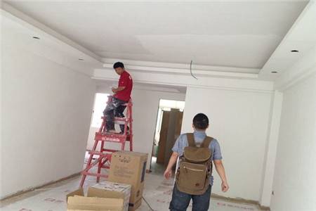 3、一般房顶都是需要刮2遍腻子的,既能找平,又能罩住底色。平整度较差的腻子需要在局部多刮几遍,打磨腻子,刮过腻子之后1到2天便开始进行腻子打磨。打磨可选在夜间,用200瓦以上的电灯泡贴近墙面照明,边打磨边查看平整程度。