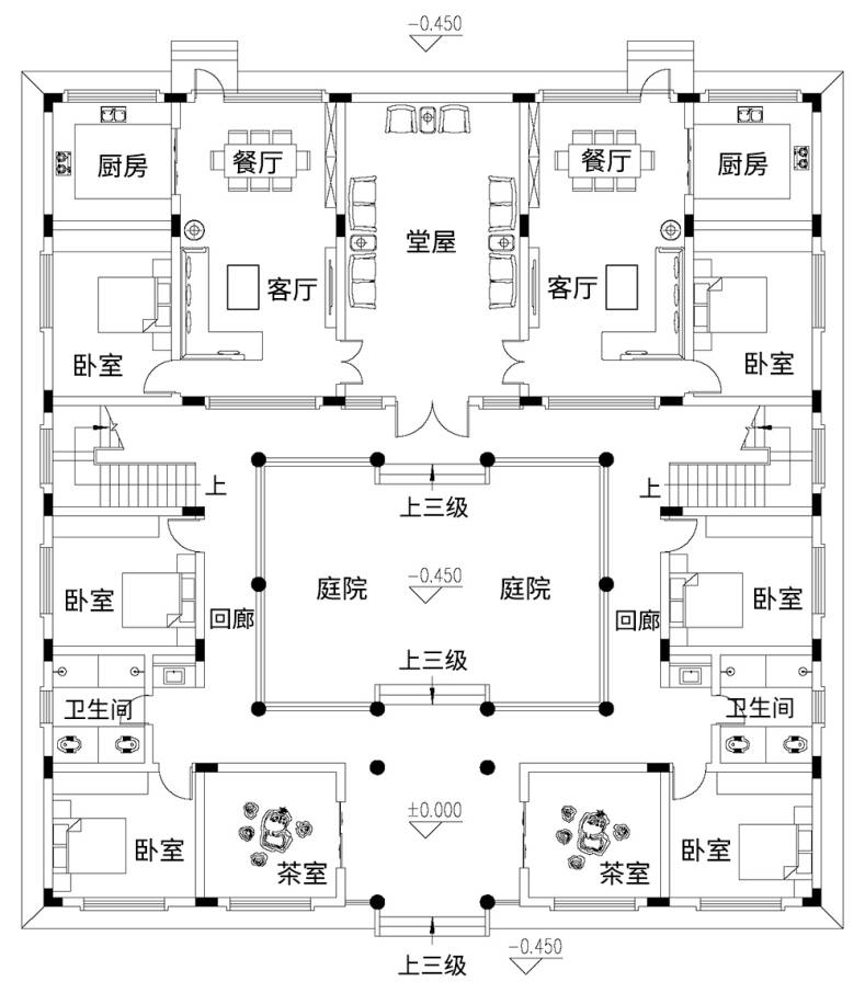四层大面积经典新中式风格农村别墅喜天下建筑喜盖房图纸施工建筑设计