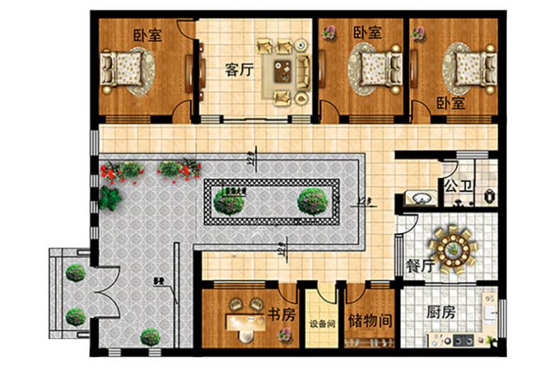 农村35万造价中式小庭院三合院自建房设计效果图 房屋设计图 别墅设计图纸方案