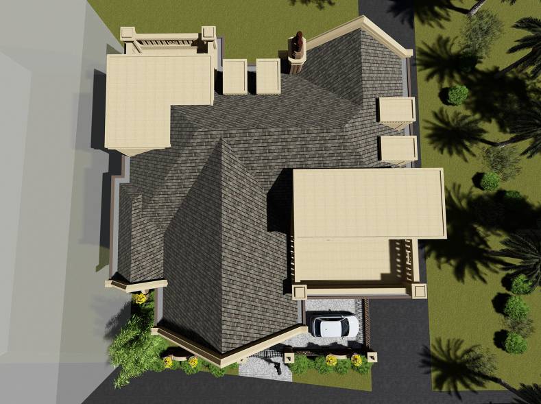 屋顶部分层次、转折较多,建筑南、北两侧均有人字顶造型,但在立面和规格上有所区别。东、北两侧屋顶布置老虎窗,与传统拱形窗不同,老虎窗与建筑线条风格保持一致,采用方形轮廓。