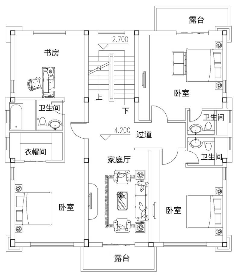二层欧式豪华农村复式别墅设计图及效果图纸