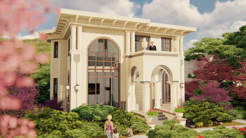 项目位于江西,建筑占地120平米,基地南高北低,主路位于基地南侧和西侧,北侧根据地形做成开敞式地下停车库。业主个人比较喜欢浪漫优雅的建筑,因此建筑最终设计为欧式风格。