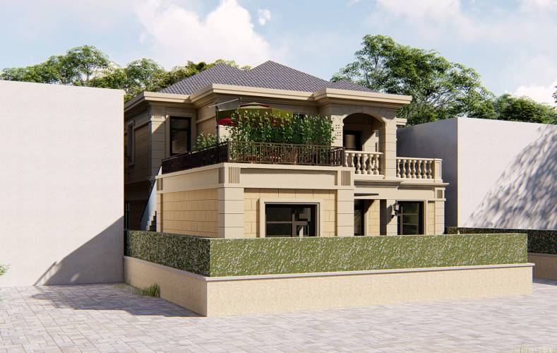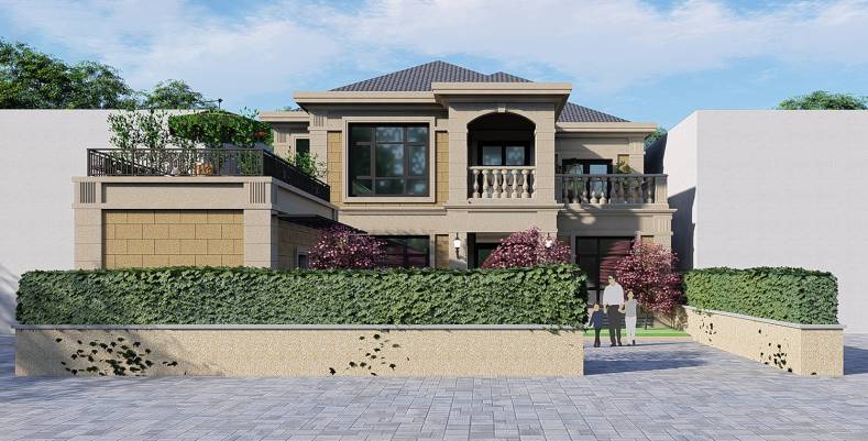 业主在项目前期提供了部分参考资料,并对立面造型有一定的需求,这让设计师在立面造型的时候有了一定的参考,同时对立面效果进行优化设计。因此根据场地情况及业主需求和喜好,将项目形式确定为南北朝向的二层欧式别墅。